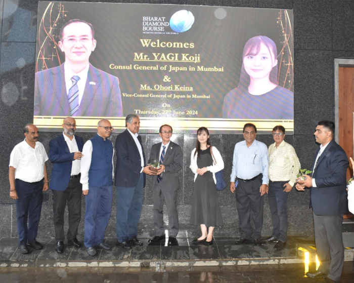 मुंबई में जापान के महावाणिज्य दूतावास श्री यागी कोजी और मुंबई में जापान की उपवाणिज्य दूत मिस ओहोरी कीना तथा मुंबई में जापानी वाणिज्य दूतावास से आर्थिक सलाहकार, स्पेशलिस्ट इकोनोमिक अफेयर्स मिस लीला काज़ी ने भारत डायमण्ड बोर्स का दौरा किया। जापान